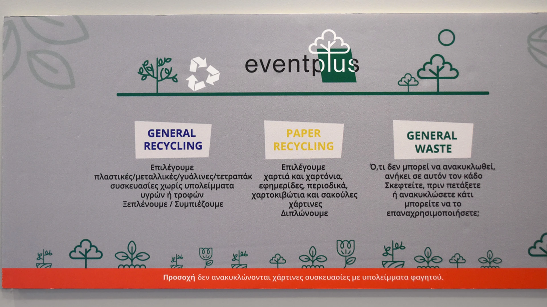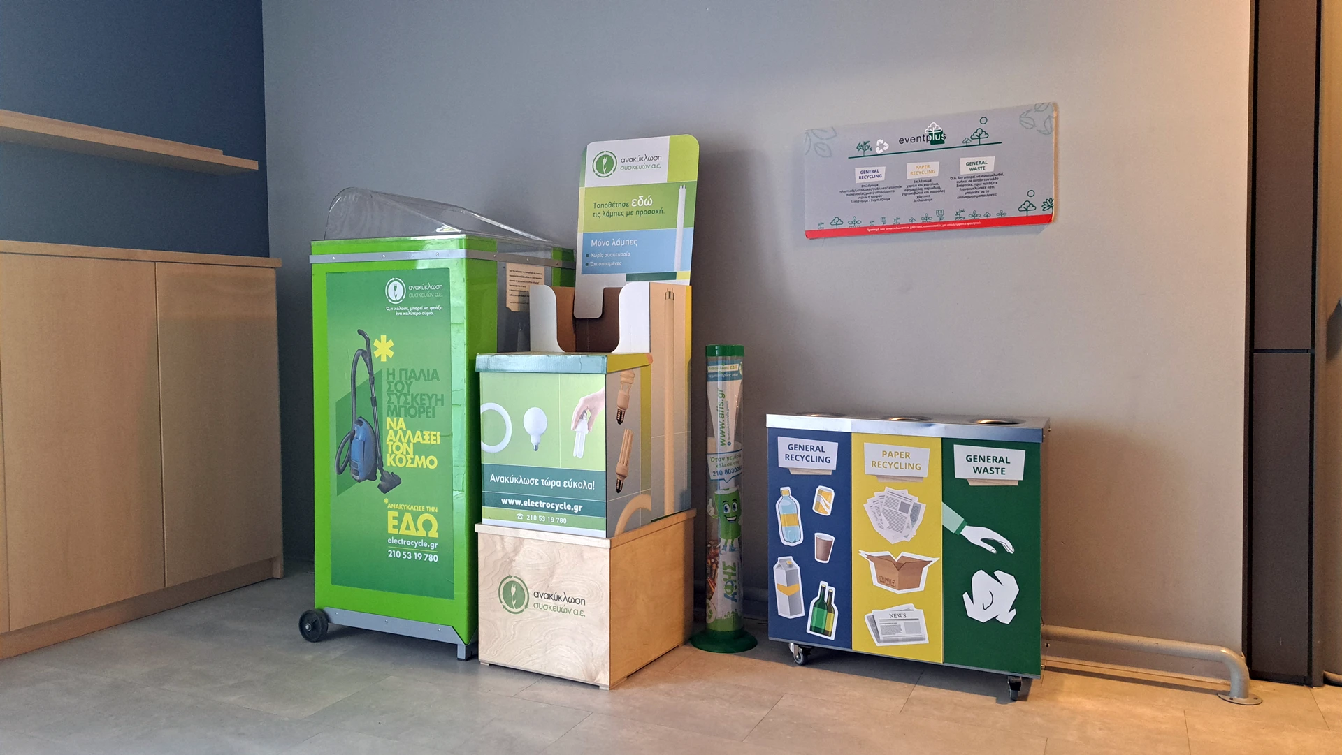 Στην Event Plus, κάθε βήμα προς τη βιωσιμότητα μετράει! Με συνέπεια στη δέσμευσή μας για υπεύθυνη περιβαλλοντική διαχείριση, προχωρήσαμε ήδη από τον περασμένο Νοέμβριο στην εγκατάσταση ενός ολοκληρωμένου συστήματος ανακύκλωσης στα γραφεία μας.